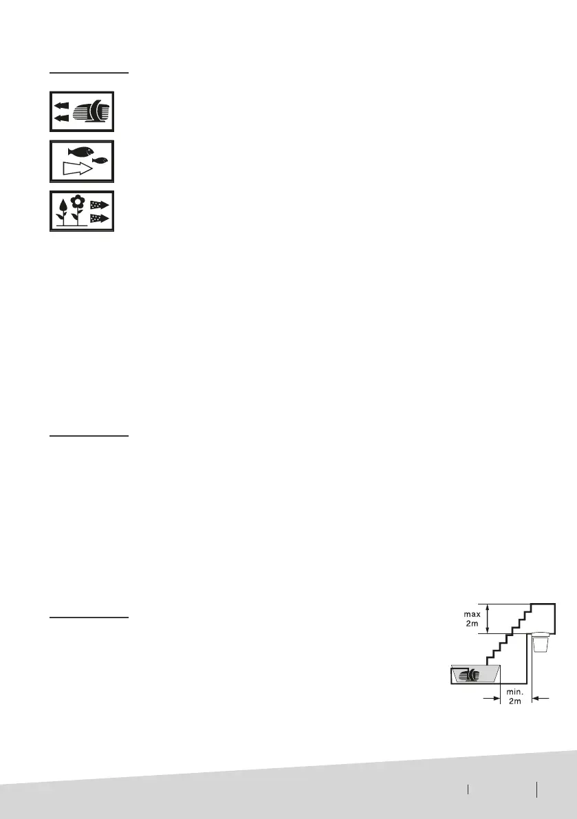 • Le filtre à pression doit être placé à au moins 2 mètres de l'étang. La sortie de l'eau de retour dans
