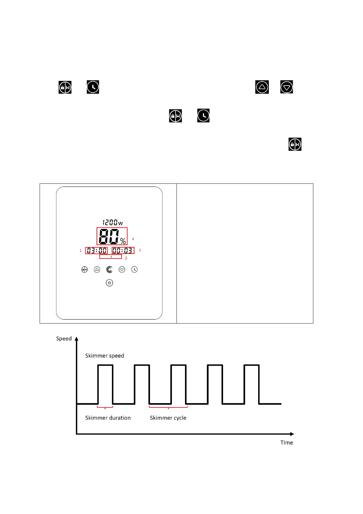 At the skimmer duration, the controller will show the parameter of the preset, user can hold