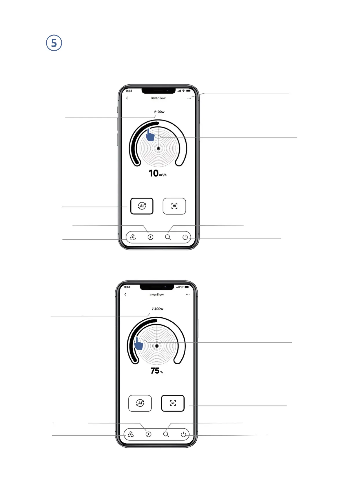 Turn the control dial to set the flow rate