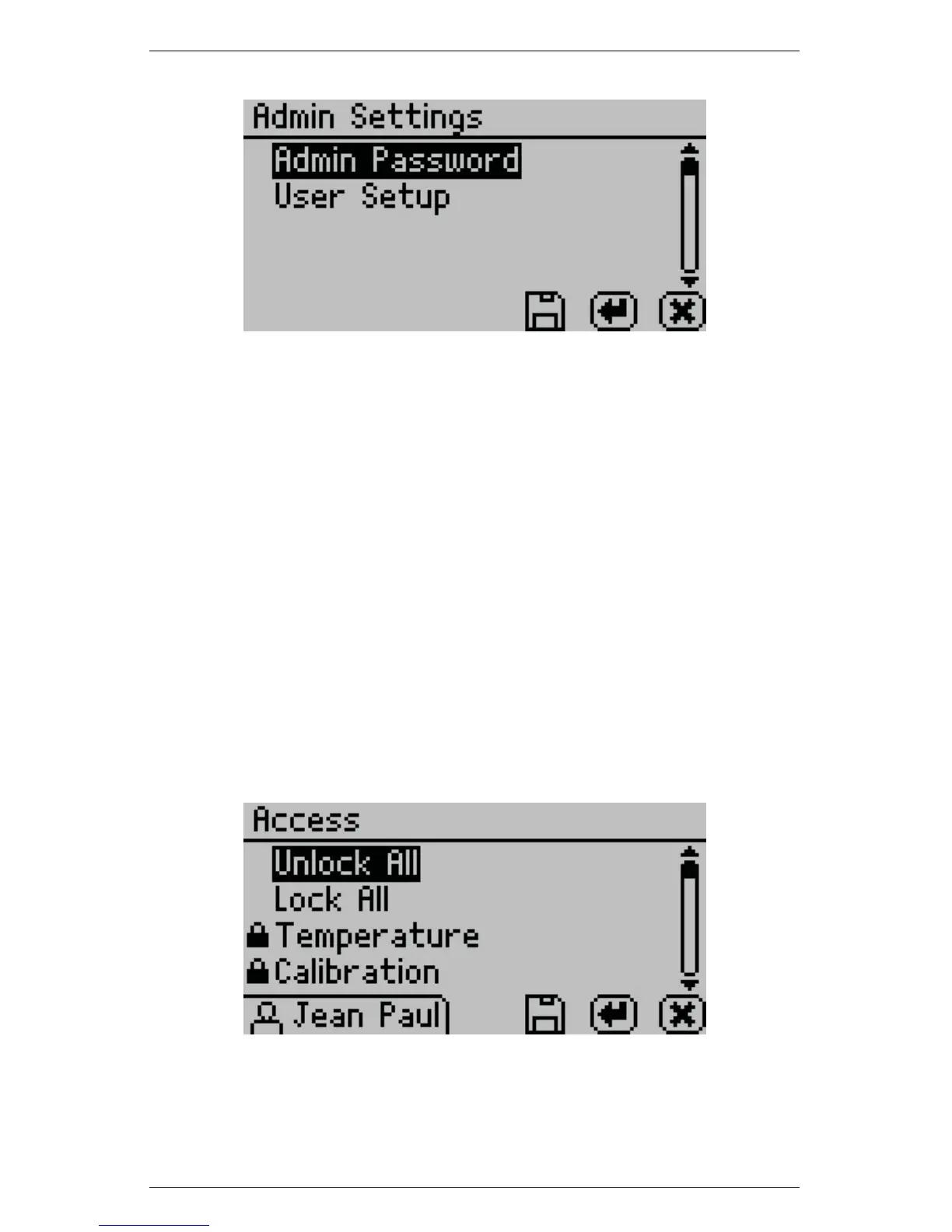 individuals.) The areas that you can lock are calibration, tempera-
