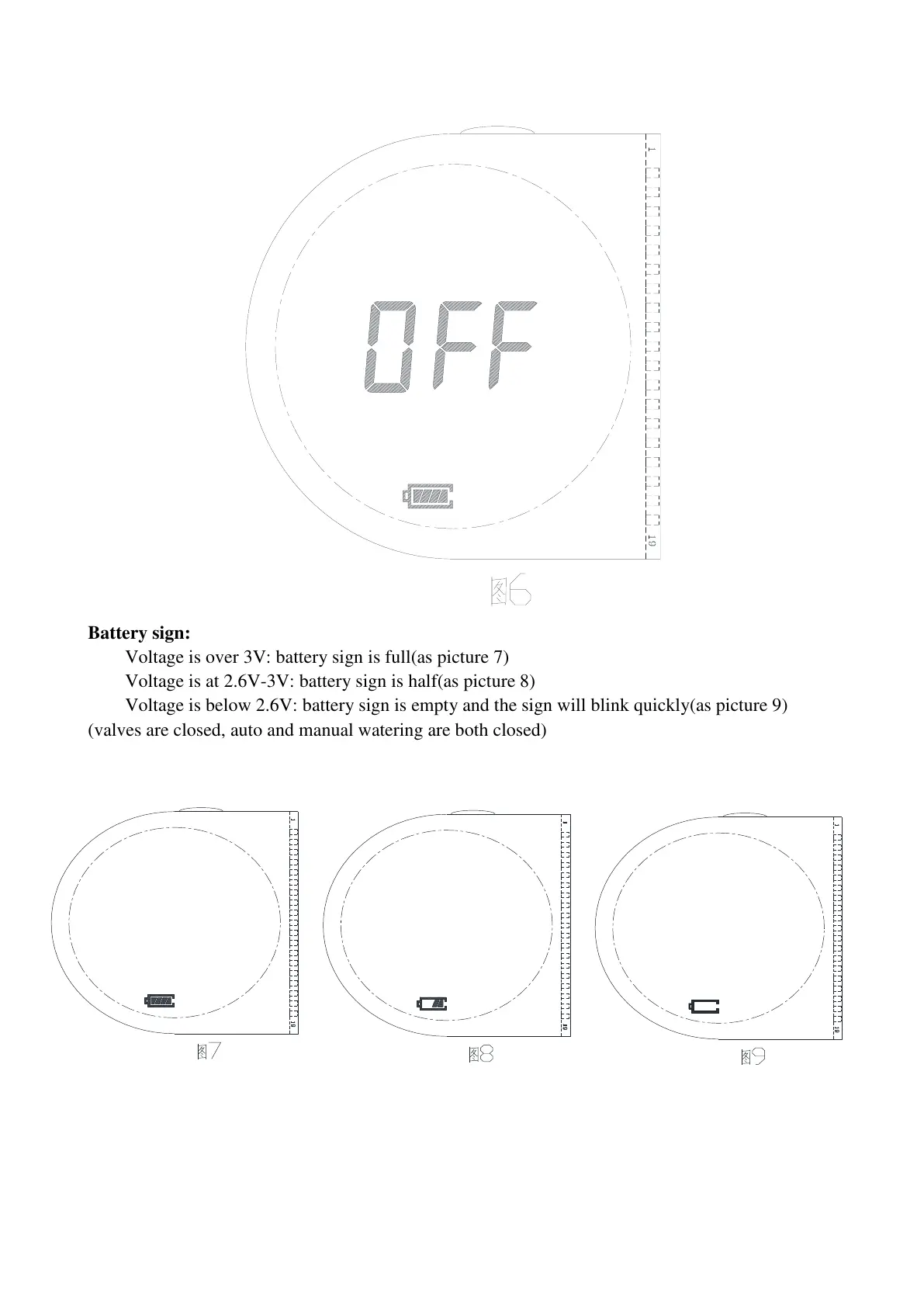 Voltage is below 2.6V: battery sign is empty and the sign will blink quickly(as picture 9)