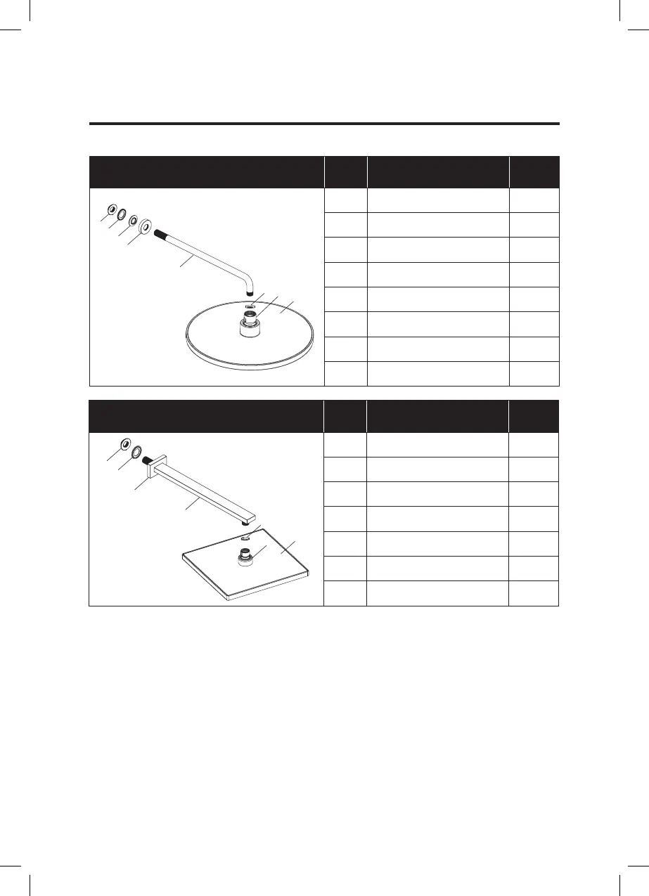 FIXED HEAD AND ARM  SQUARE NO. DESCRIPTION QTY