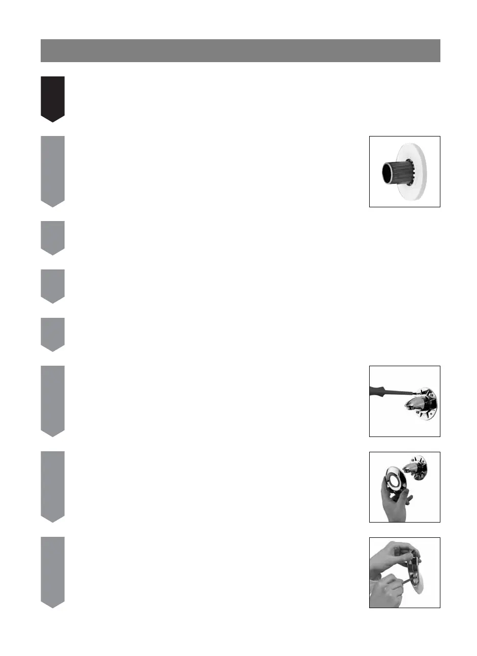 Remove the wall outlet cover plate and carefully slide the wall outlet onto the projecting pipe. Turn to the required position