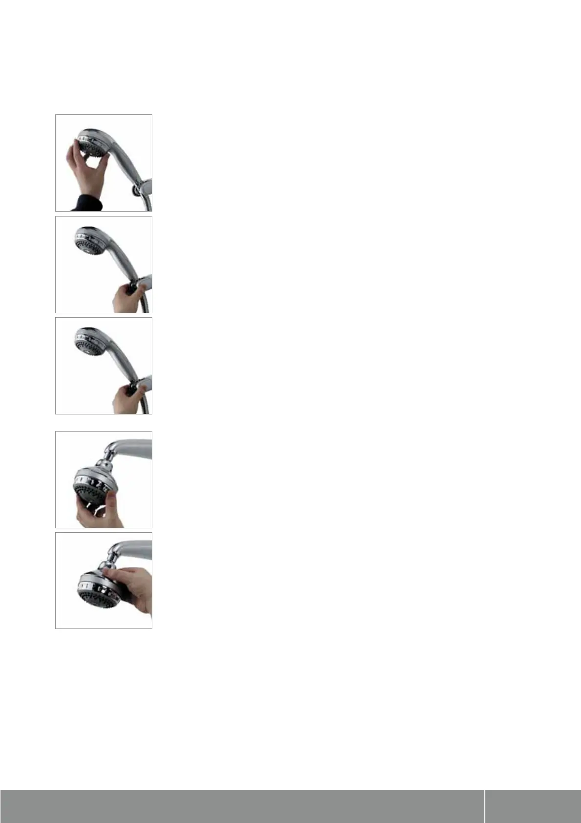 1. To select the desired spray pattern rotate the shower spray cassette clockwise or anti- clockwise.