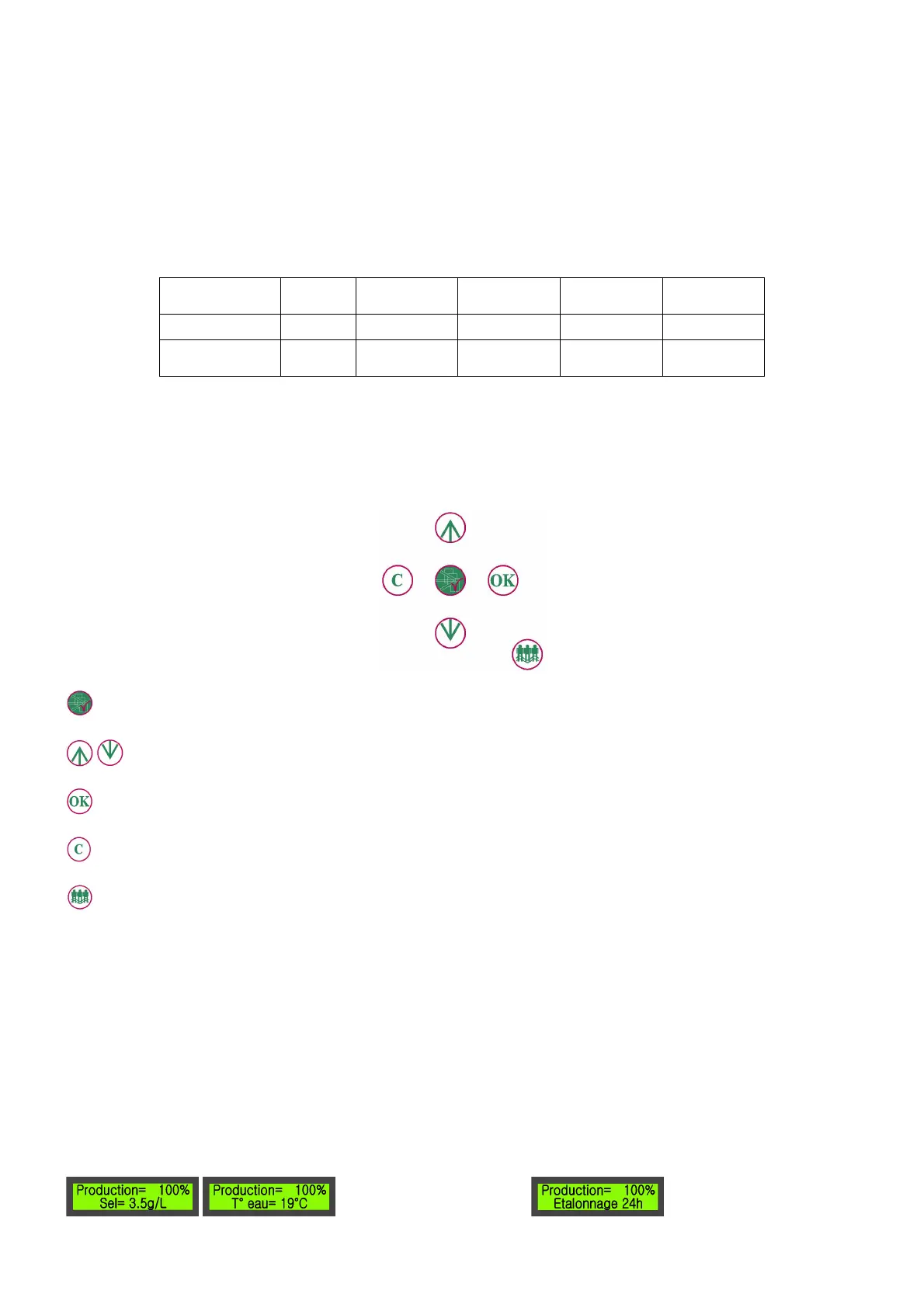 OK : Use this button to confirm a change of setting of your chlorinator and to come back to the previous menu.