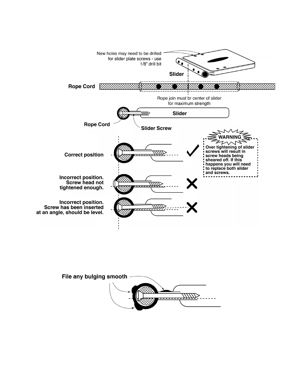 It is VERY IMPORTANT that the slider screws are screwed down to the correct depth to prevent