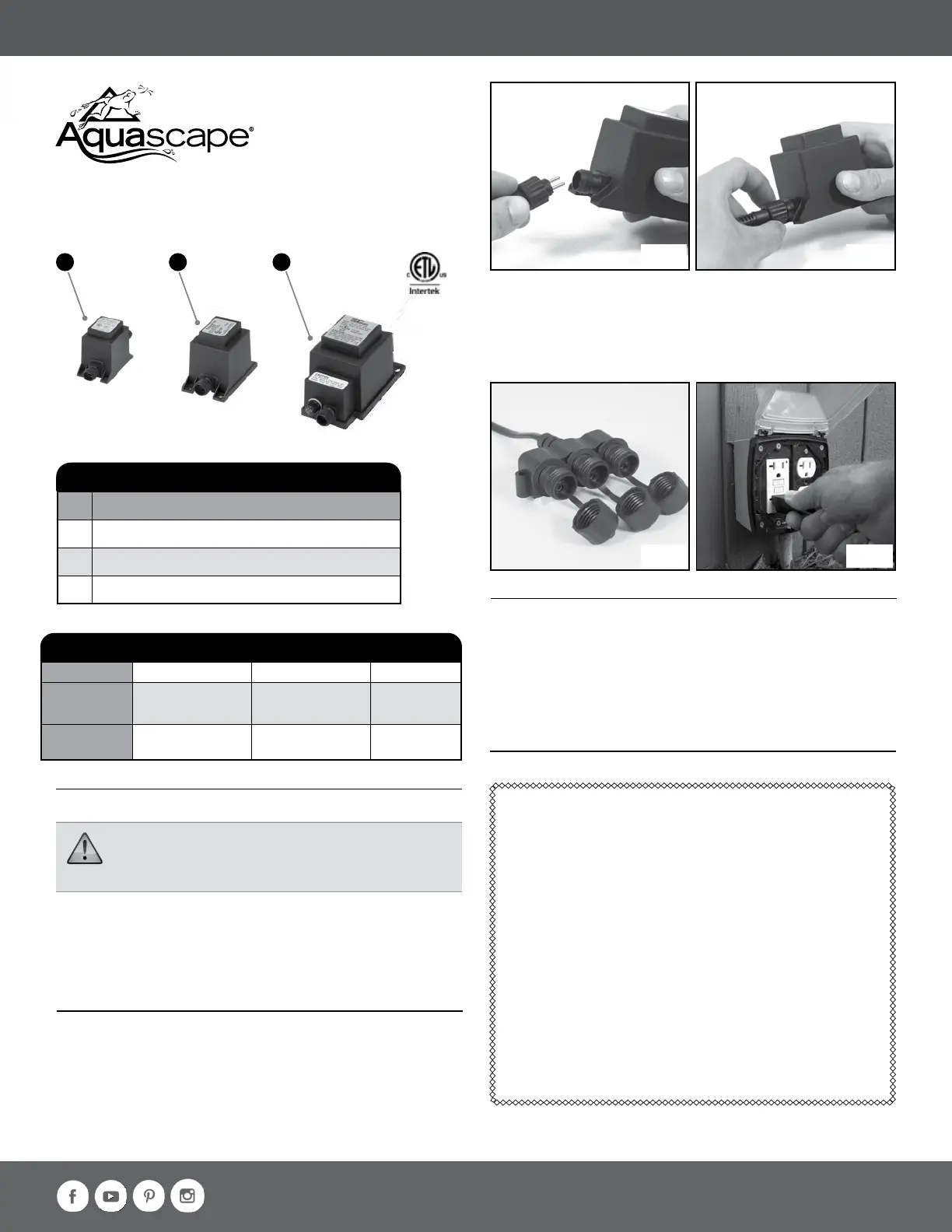 Aquascape garantit que le transformateur sera exempt de défauts