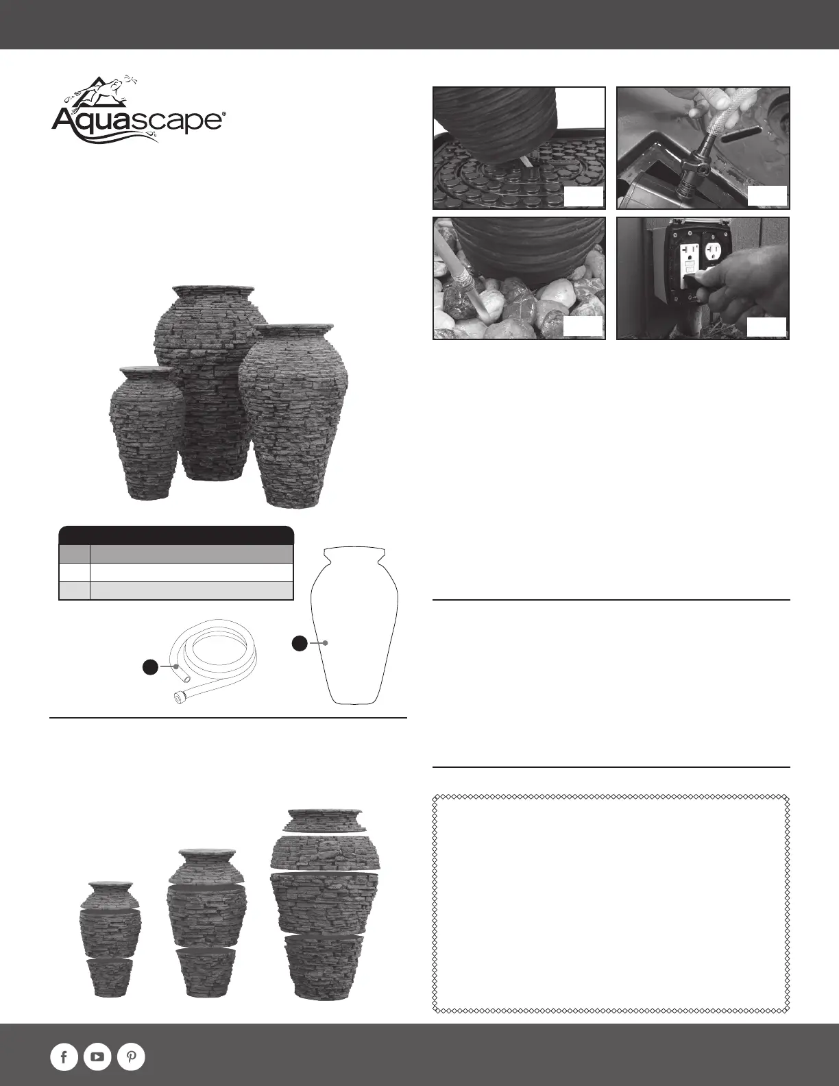 Aquascape garantit que l’urne en Stacked Slate Urn exempte de défauts