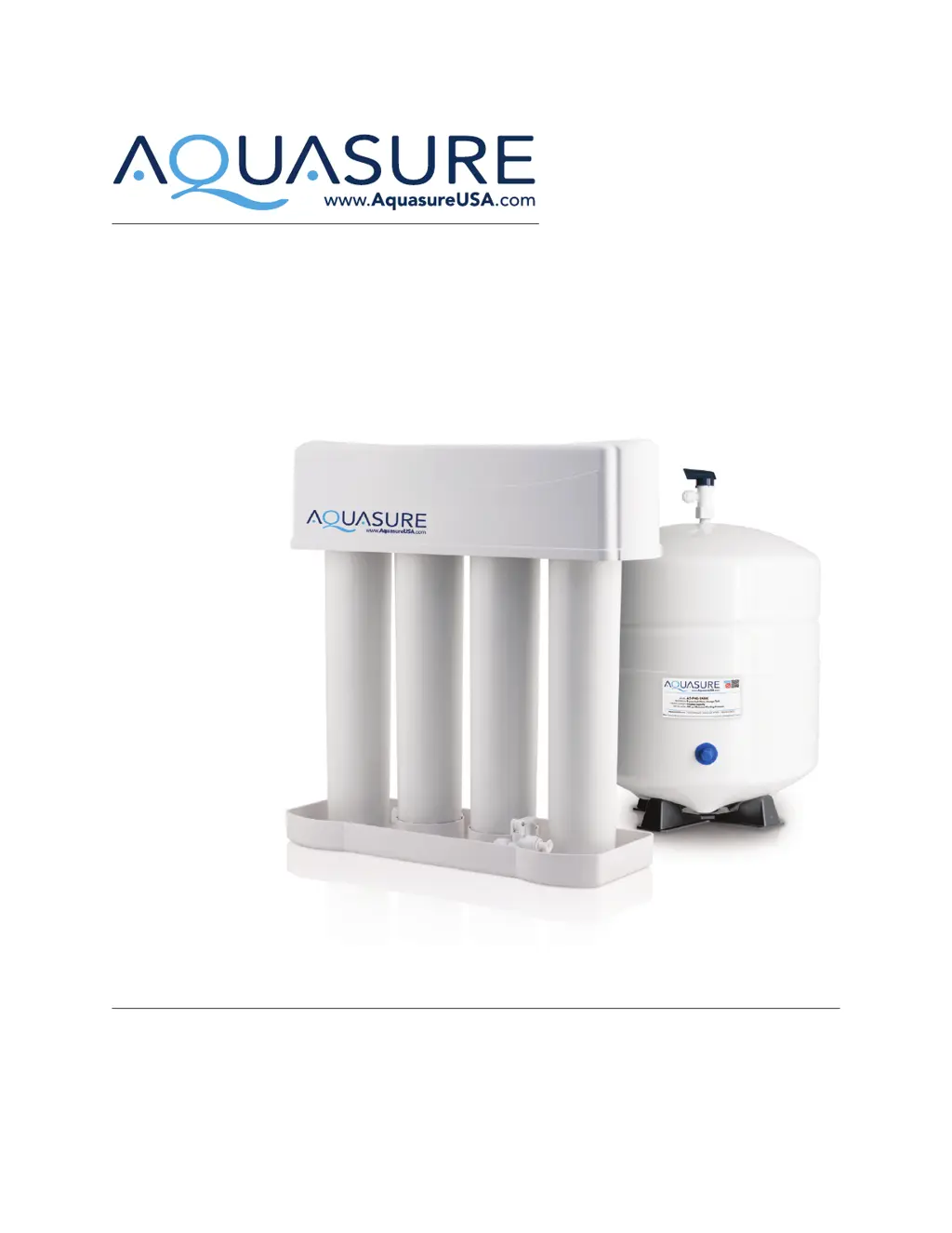 Low water pressure from the dispensing faucet of your AquaSure Water System can arise from several causes: 1. Incorrect air pressure in the holding tank: Empty the tank, shut off the feed water, remove the tank, add air to the valve stem until all water is removed, pressurize to 8 psi, reinstall the tank, and turn on the feed water. 2. A clogged carbon post filter: Replace the post filter. 3. A partially closed holding tank valve: Fully open the tank ball valve. 4. A faulty faucet: Repair or replace the faucet. 5. Heavy water use: Allow the holding tank to refill for about an hour. 6. Low water production: See “Not enough water from holding tank” for troubleshooting.