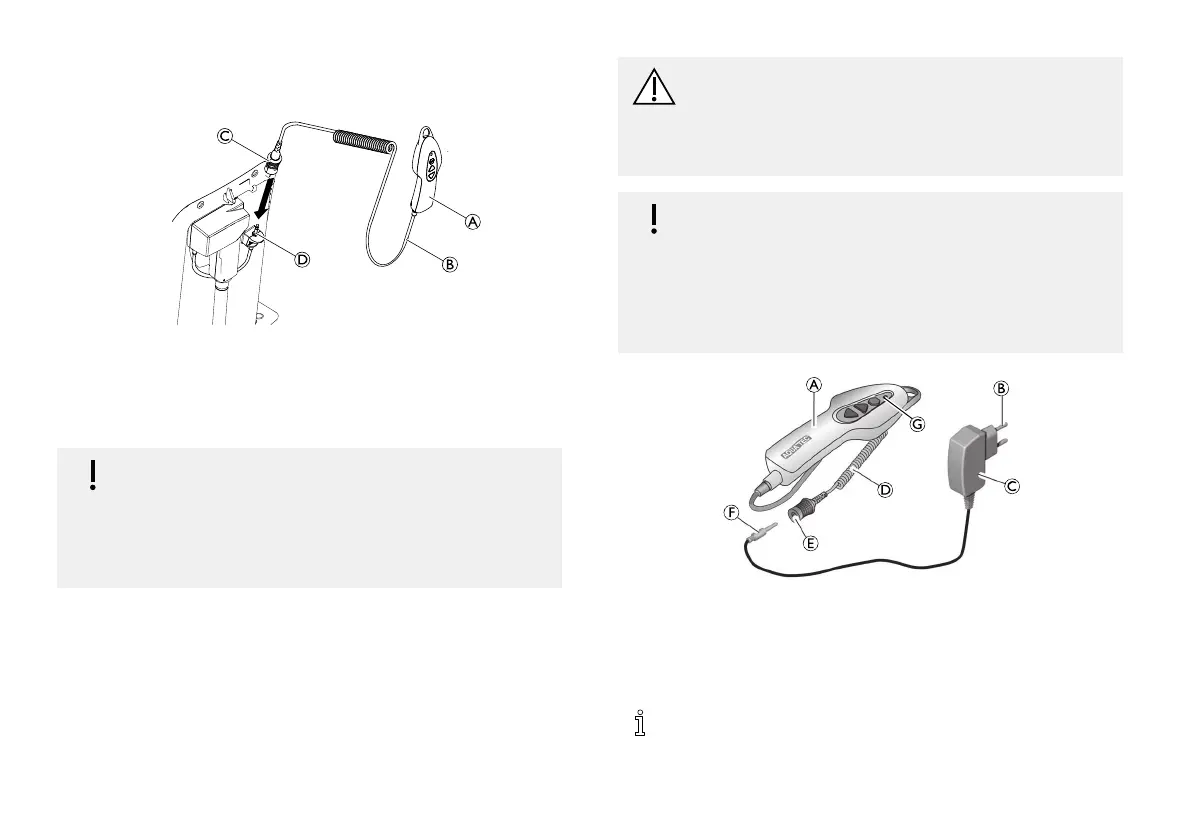 handbedieningseenheidisaangeslotenopdelader.
