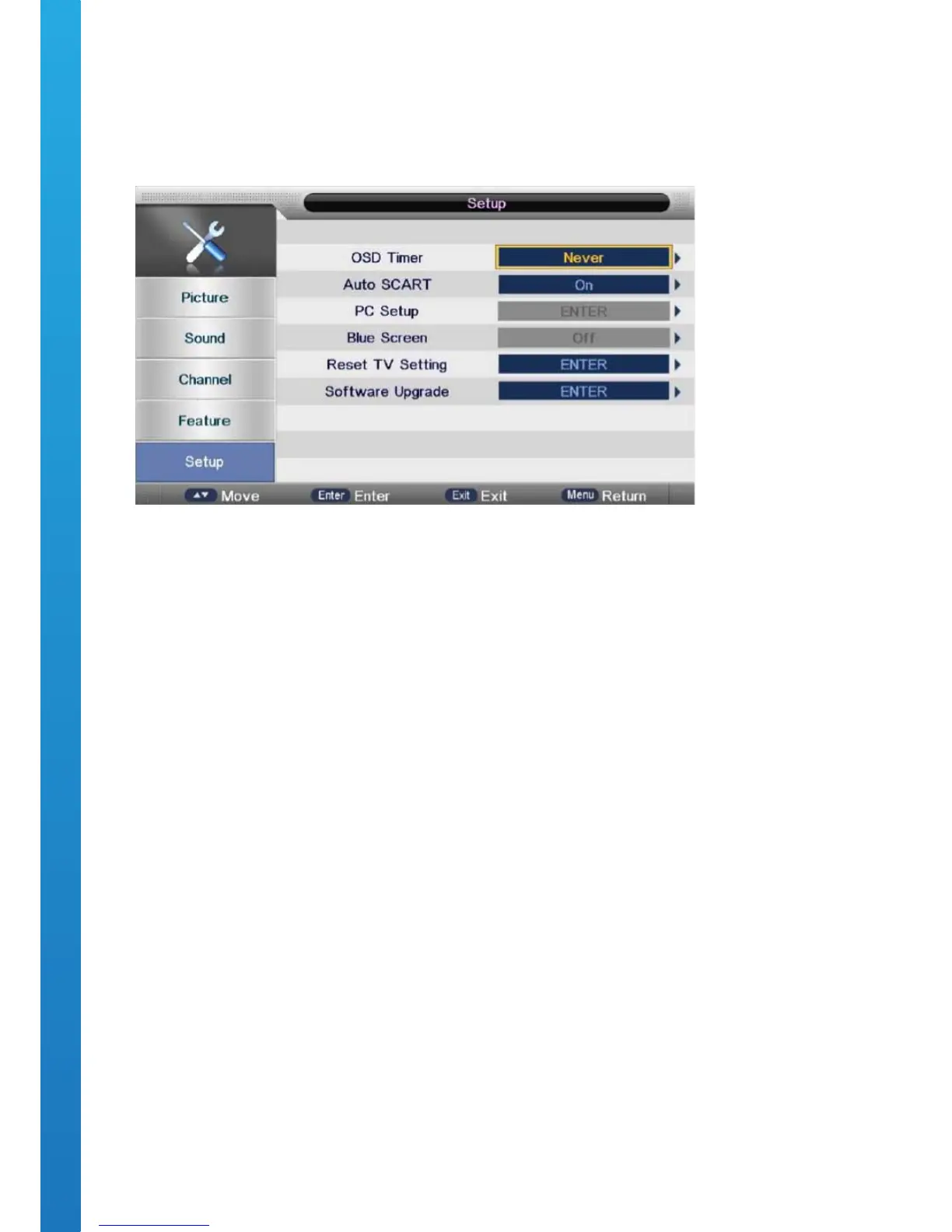 Press ▼ / ▲ buttons to select Blue Screen, then press the OK button to select either On or O.