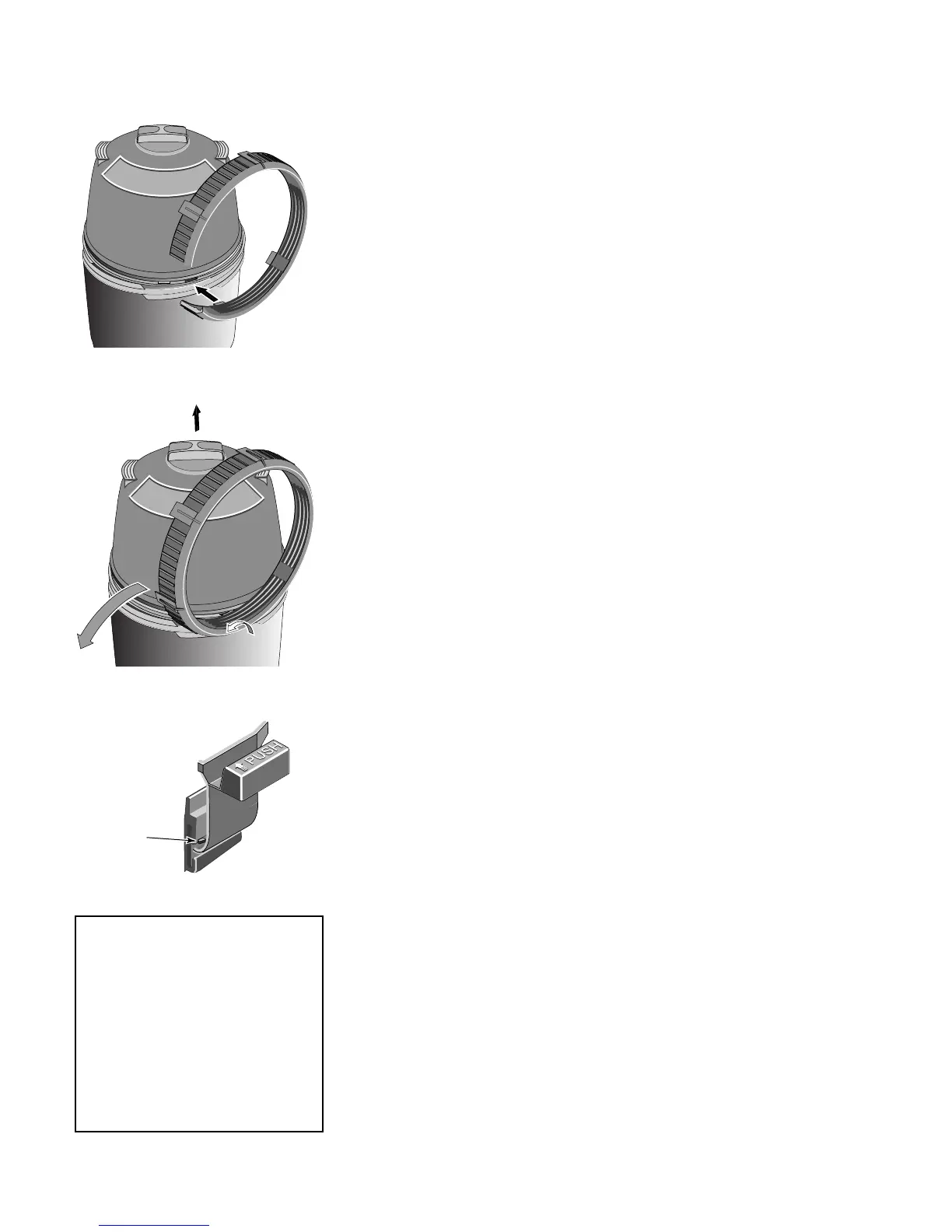 NOTICE: DO NOT operate the filter if the safety latch is damaged or will