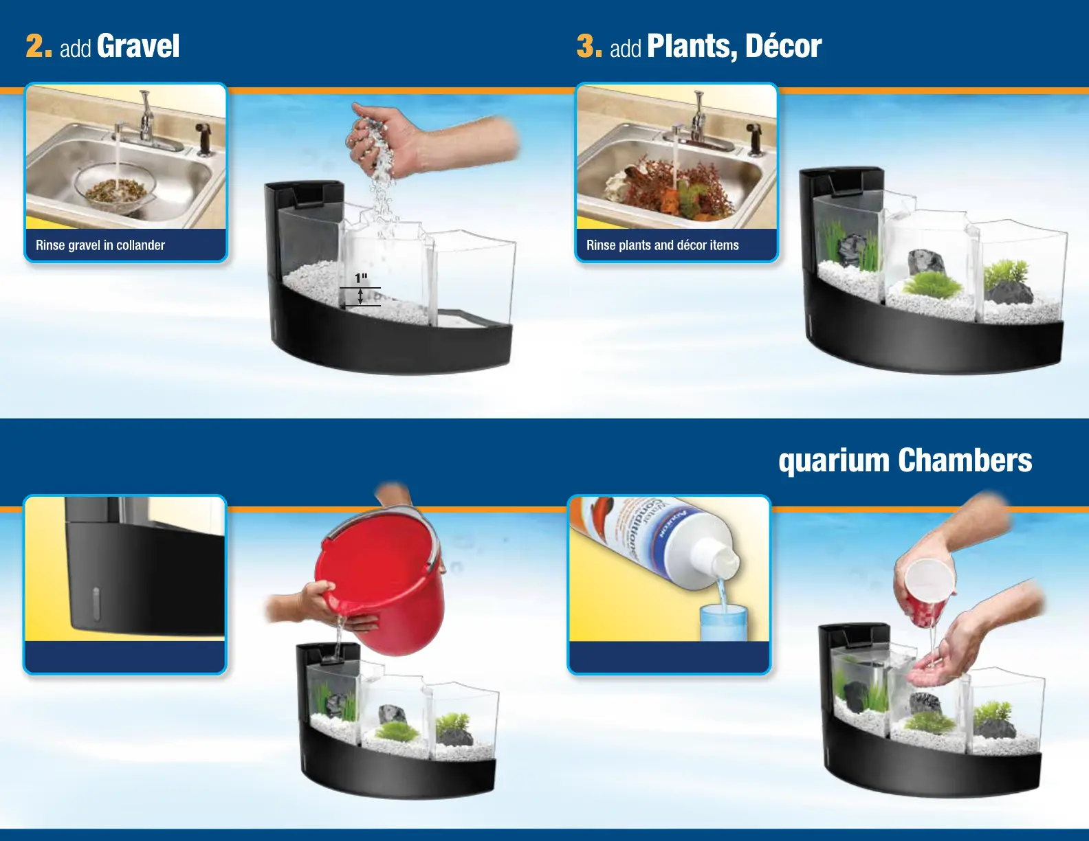 6. add Filter Cartridge5. add Water to Aquarium Chambers