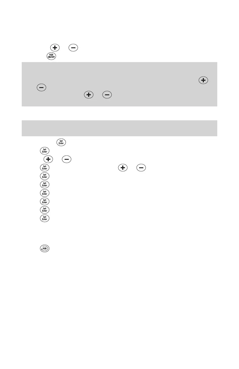 – you will see ‘RGB’ and ‘ON’ on the screen to set the RGBs ON. Repeat steps 3-4.