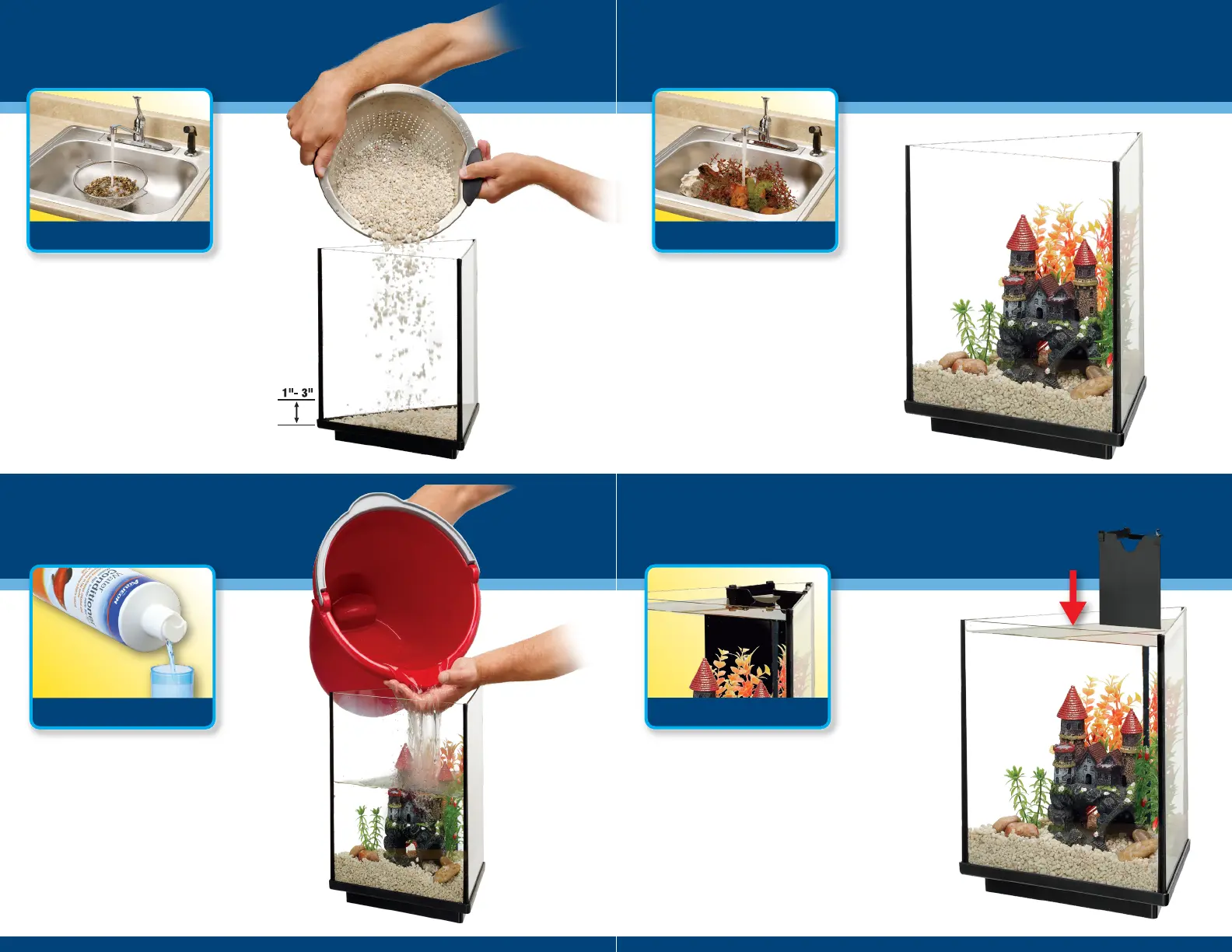 Make sure all clips attach to tankAdd Water Conditioner as directed