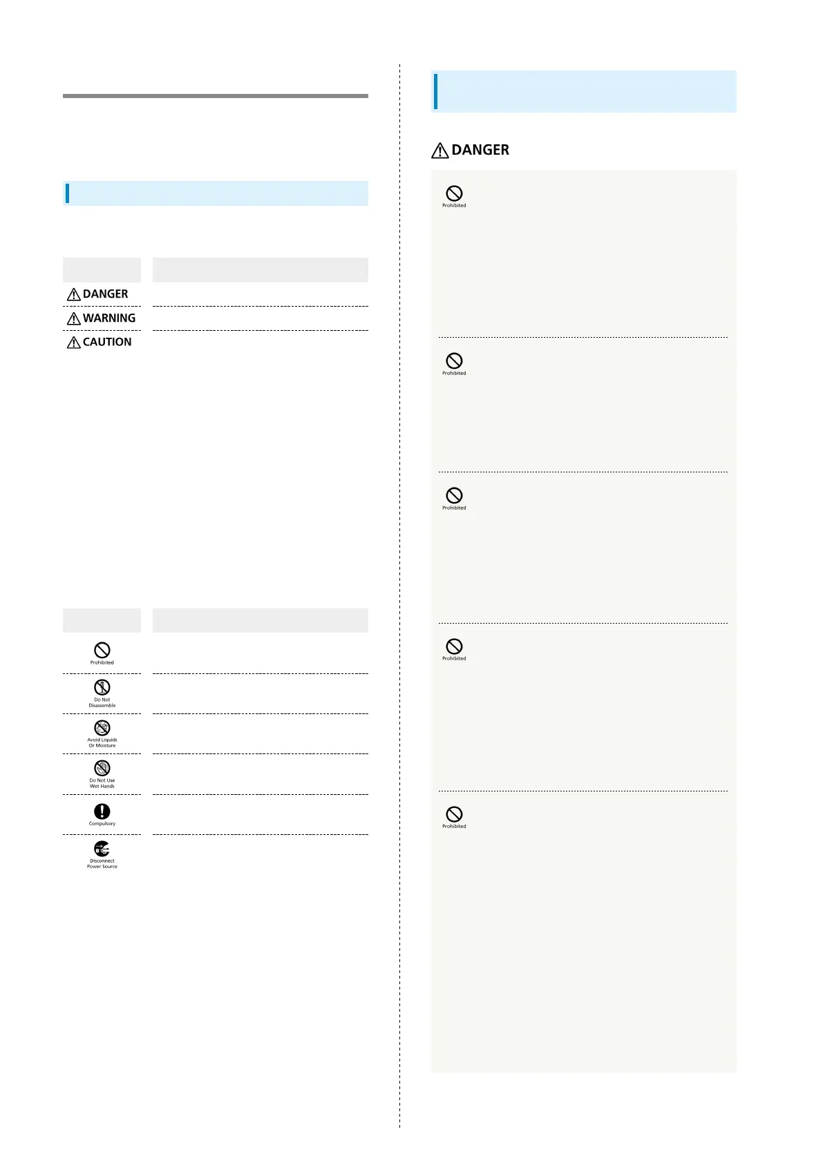 These symbols signify prohibited/compulsory actions.