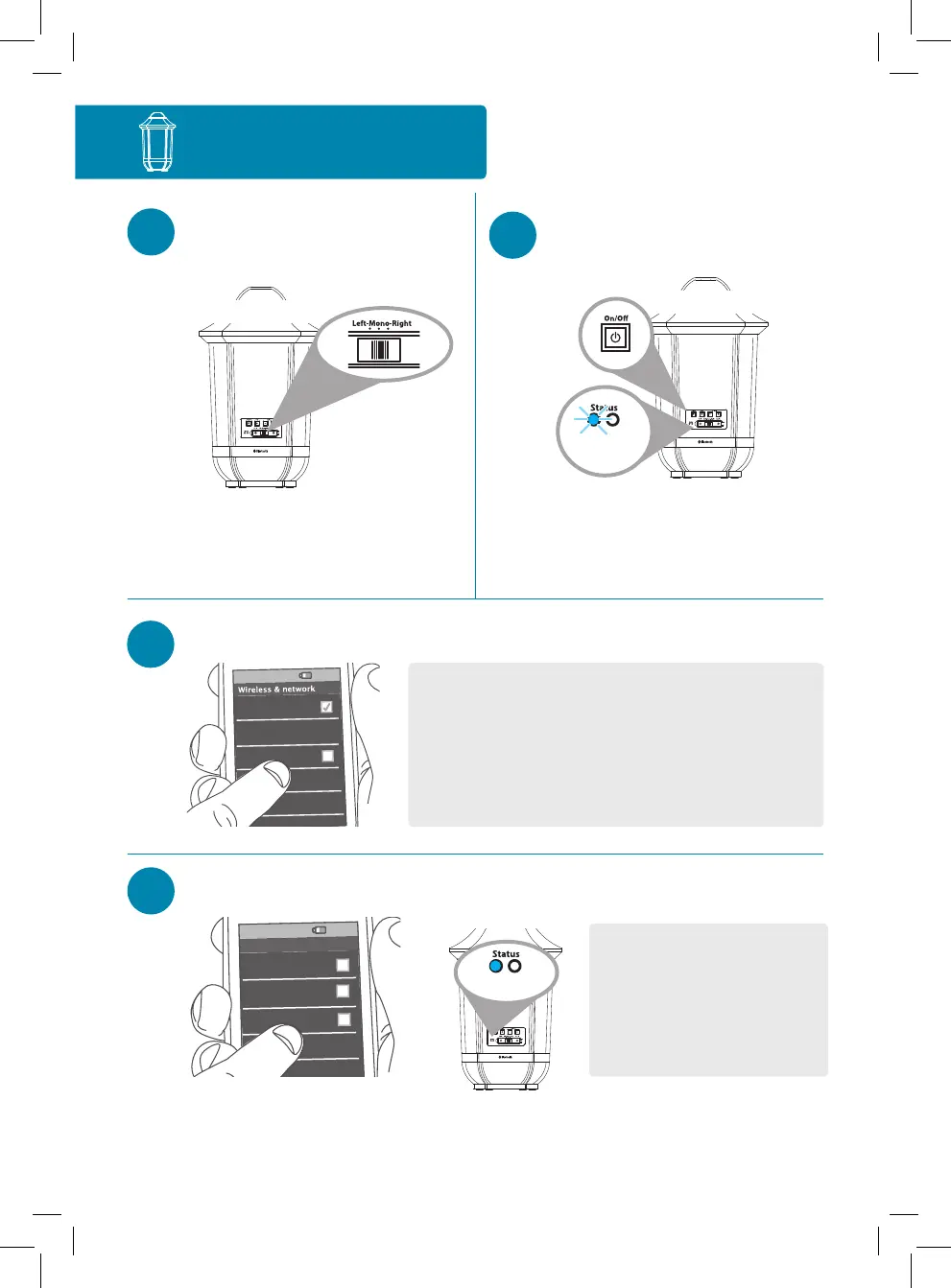 smartphone. The blue Status light on the back of the speaker turns solid