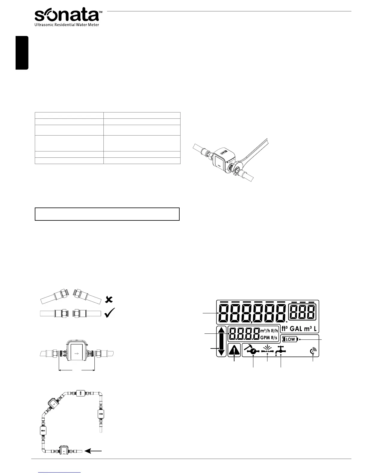 • Installieren Sie den Zähler nicht an der Ansaugseite einer Pumpe.