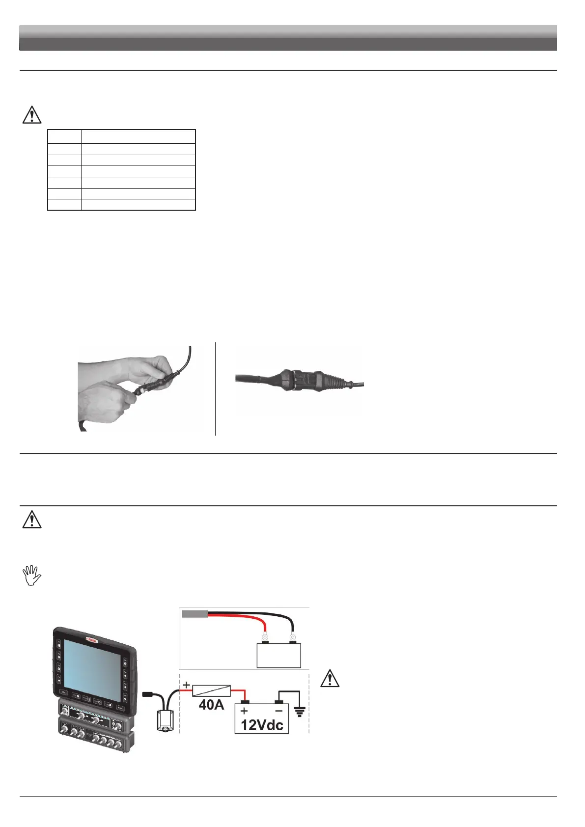 Delta 80 is supplied directly by the farming machine battery (12 VDC): ALWAYS switch on the system through the computer, and then remember to