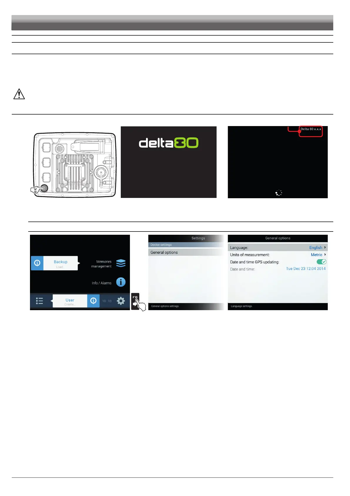 Upon rst switching on, after the software version, Delta 80 displays the "Home" screen (Fig. 29):
