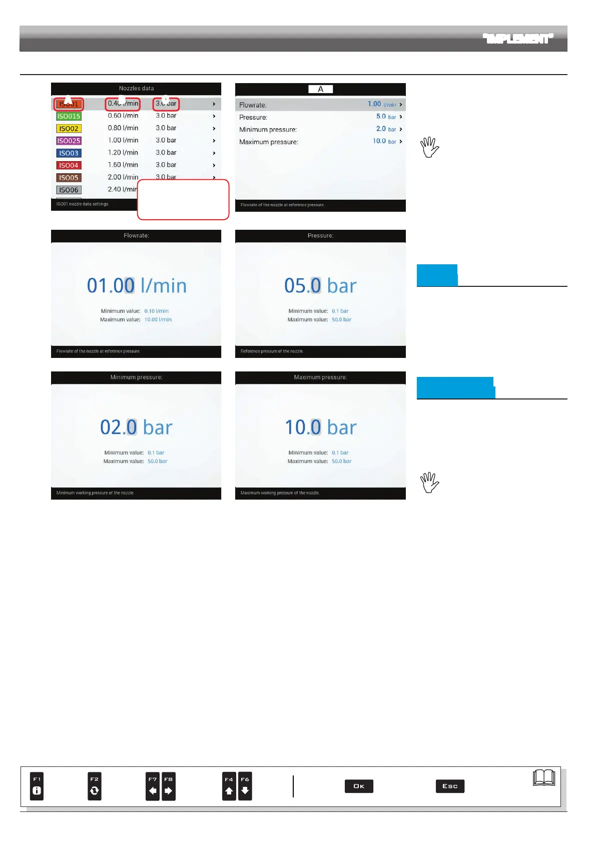 Set the pressure limits for the selected nozzle.