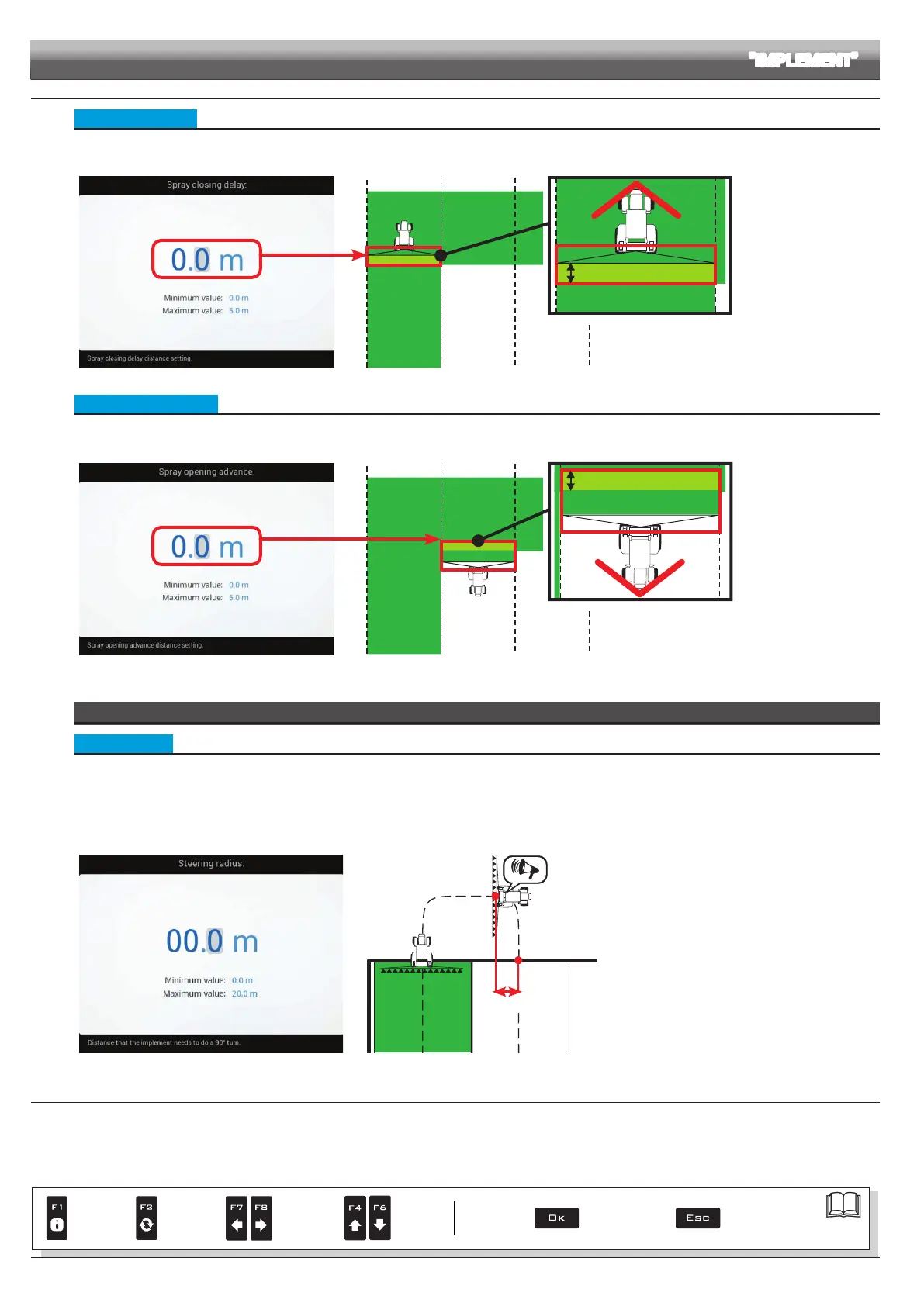 Indicate the distance corresponding to the advanced opening of sections during spraying, to ensure correct spraying range.