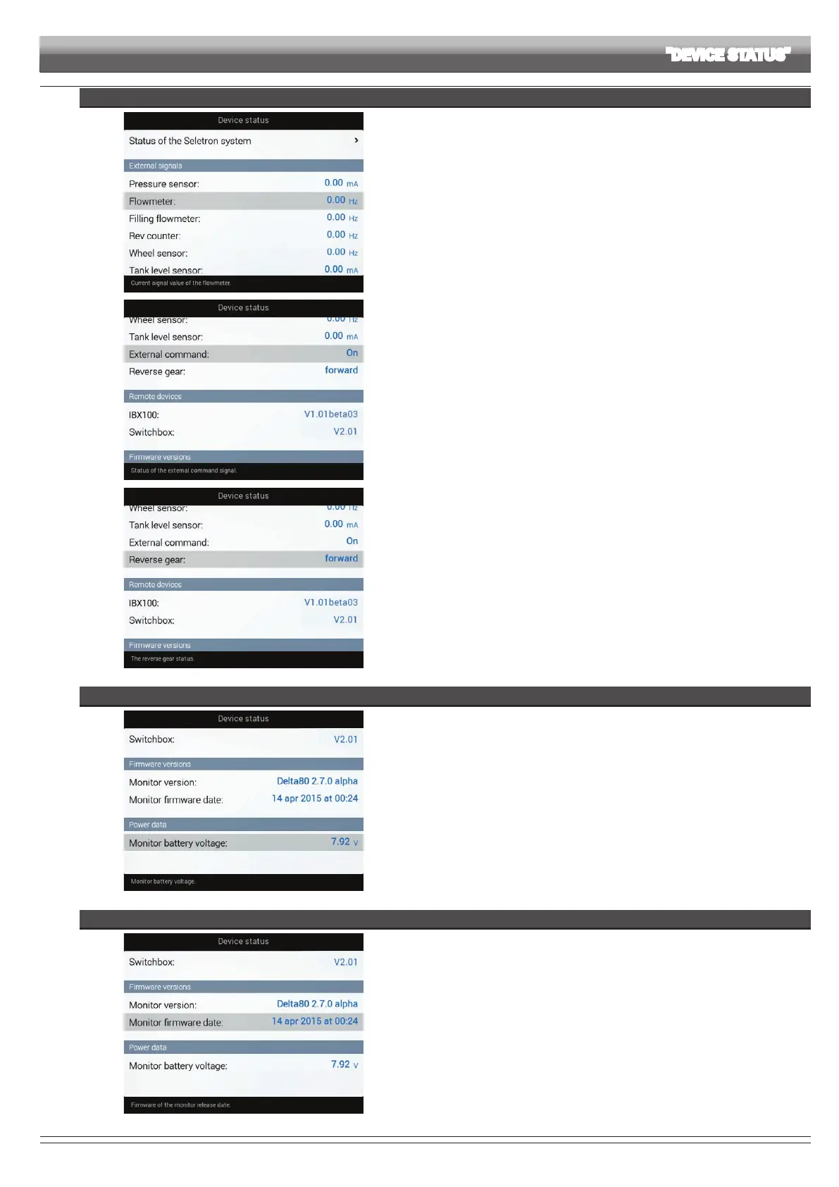 Delta 80 displays rmware versions.