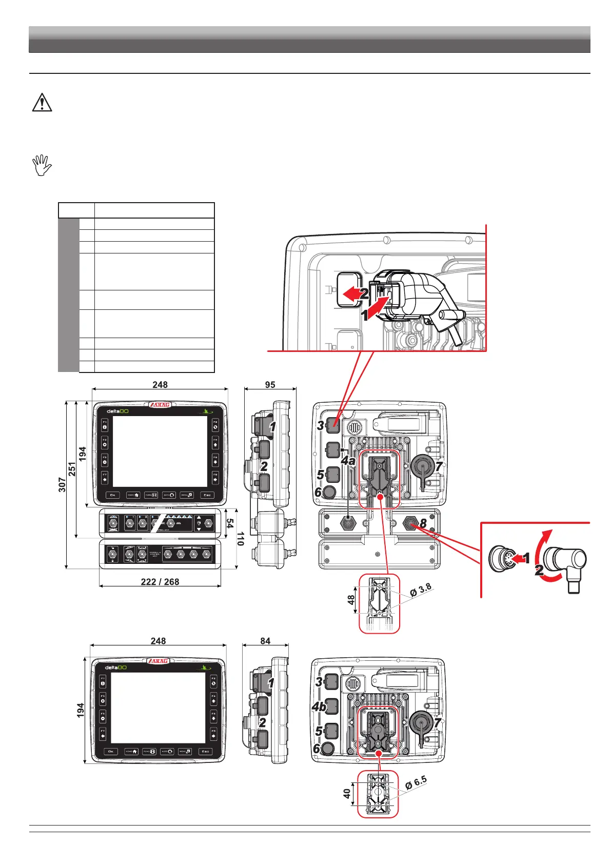 • The Delta 80 computer must be placed in the control cabin of the farming machine. Observe the following precautions: