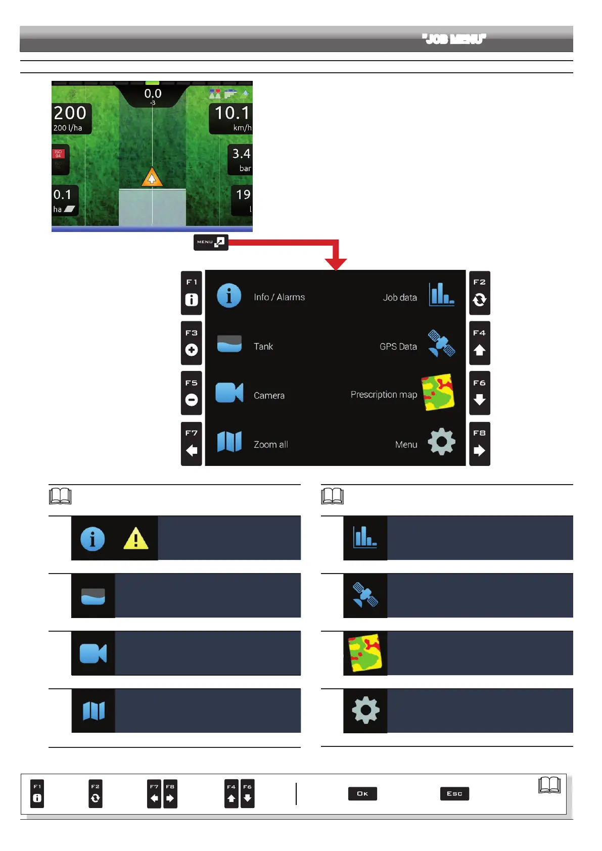 In the job menu (Fig. 312), pressing any key at the side will enable the relevant
