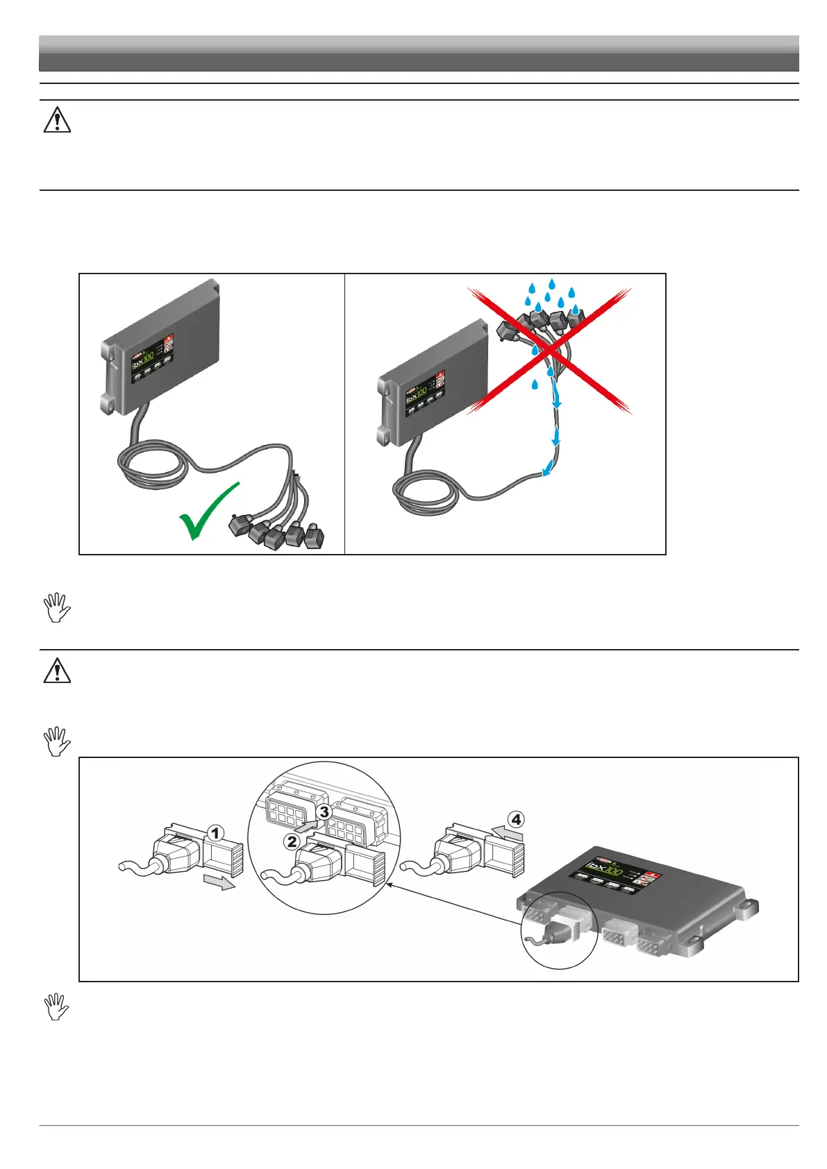 Connect harnesses as specified in par. 5.3; each one of them shall be connected to the corresponding socket on the remote control unit.