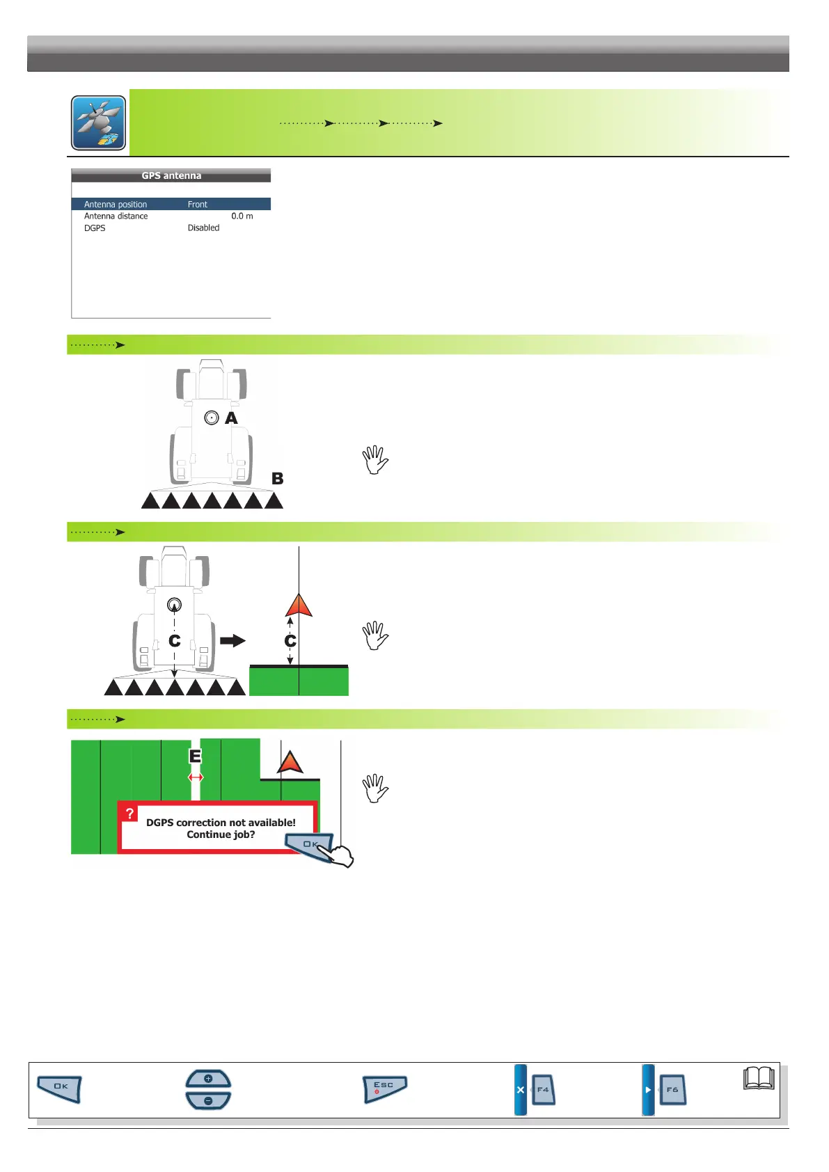Indicate the position of the antenna with respect to the point where tractor is spraying (crop spraying