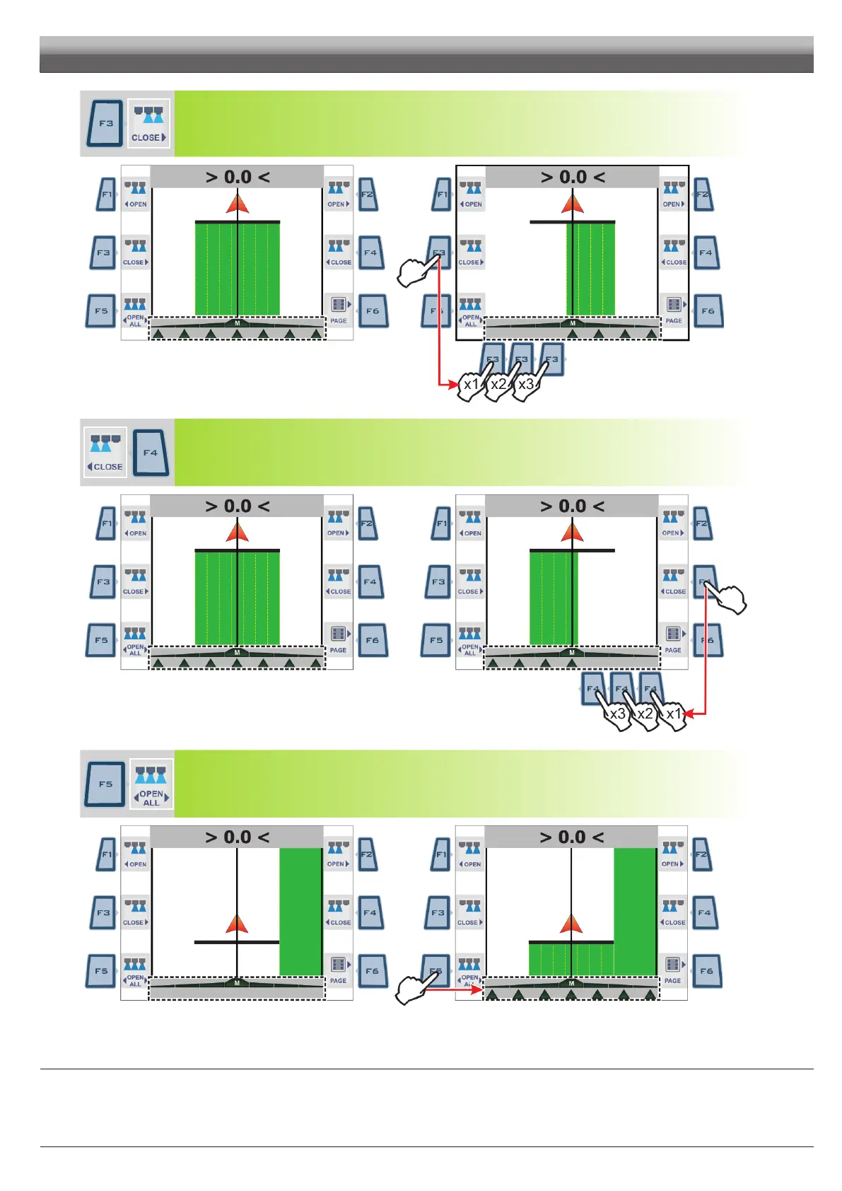 Press a few times to indicate valve closing, one at a time, from right to left, starting from the rst opened section valve
