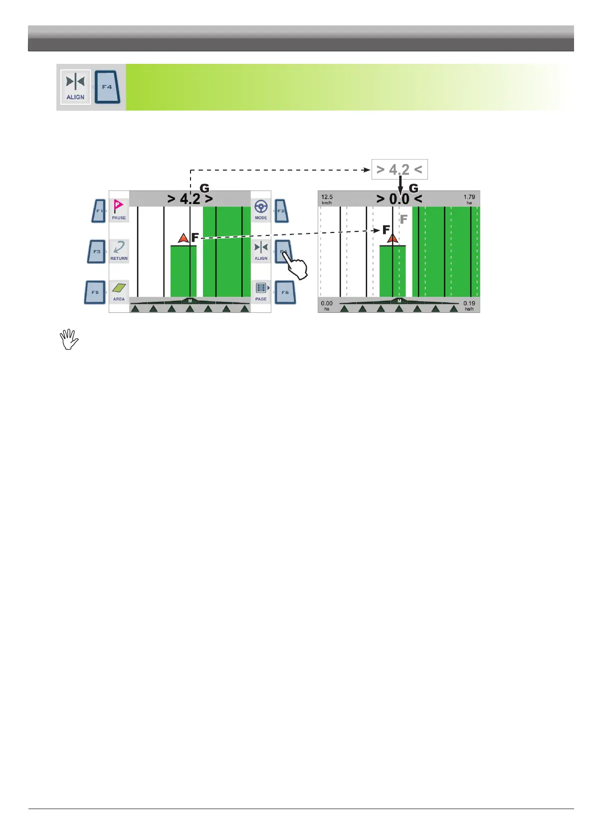 F4 if you need to realign, maintaining the same direction (such as with maize, sugar cane).