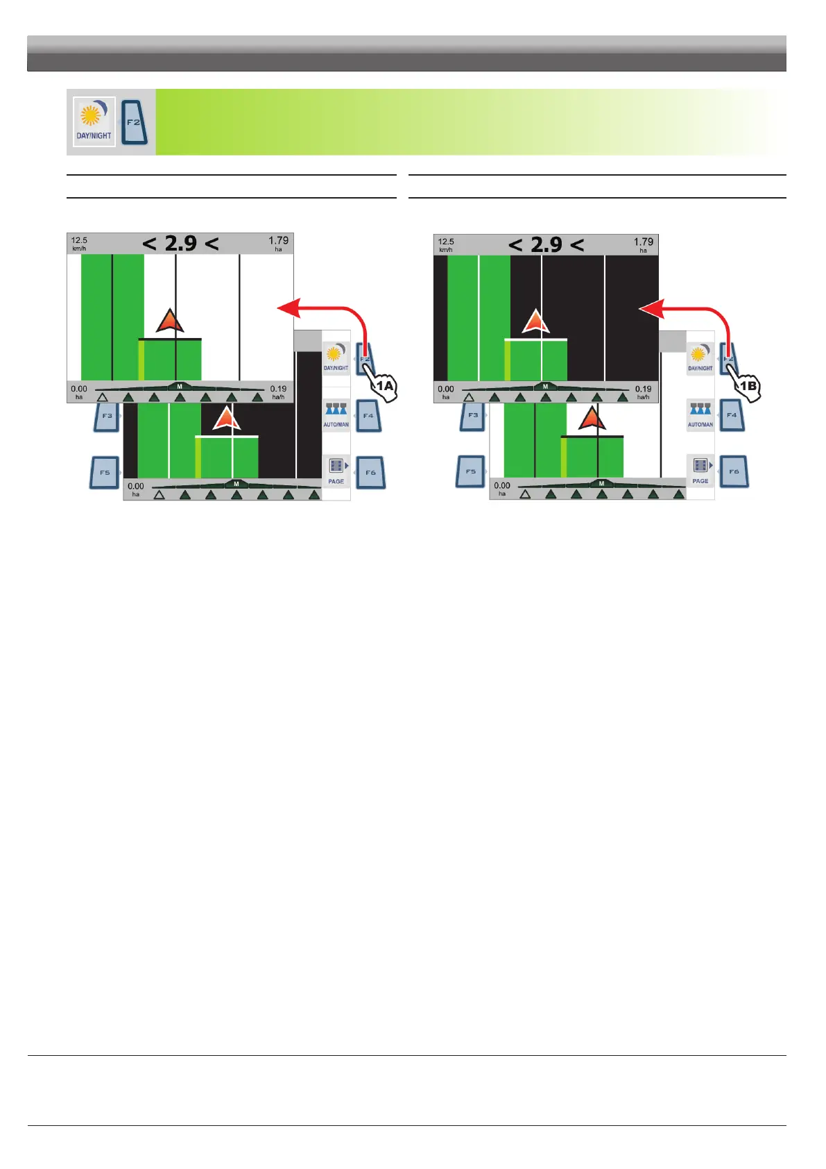 Toggle from day display guidance mode to night one and vice versa (Figures 130 - 131)