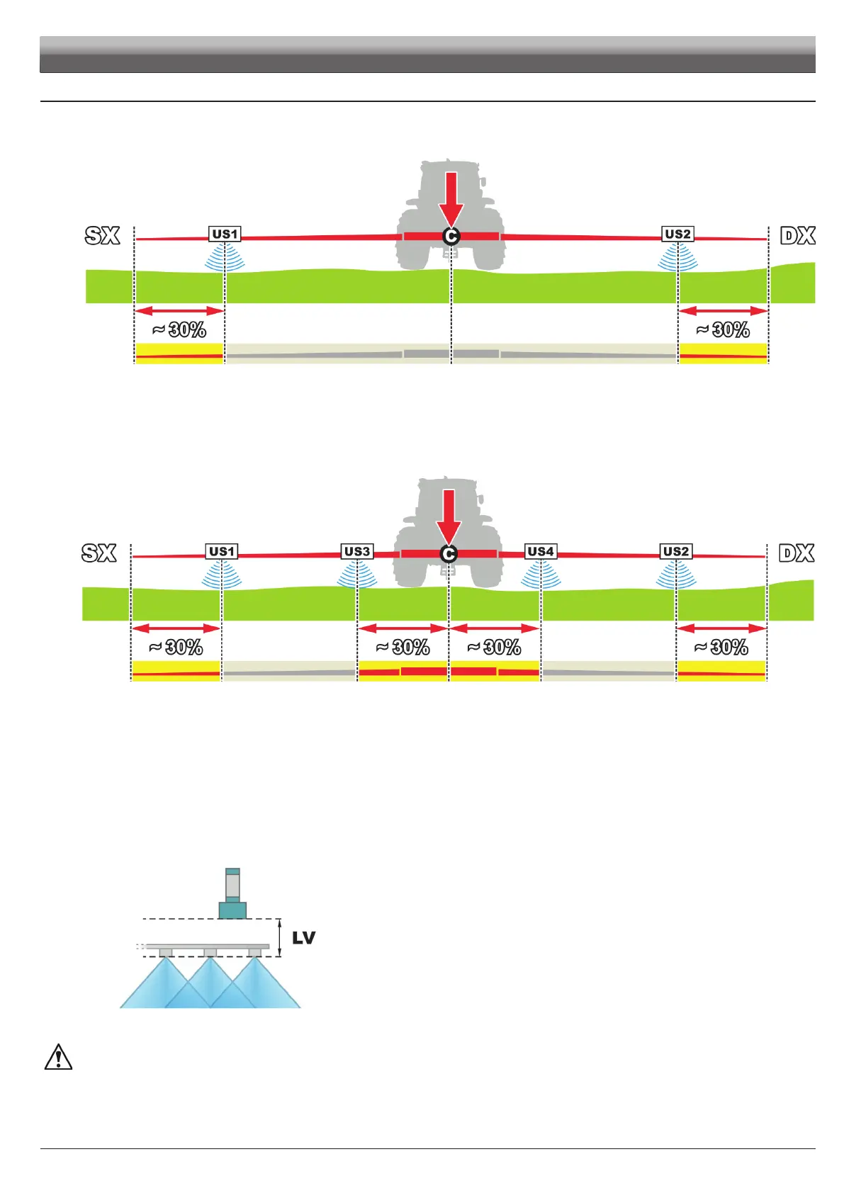 US1 (LH side) + US2 (RH side) = external pair of sensors (far from boom center) refer to basic setup.