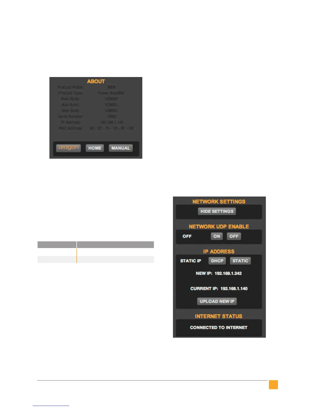 IP address, MAC address as well as buttons to view the
