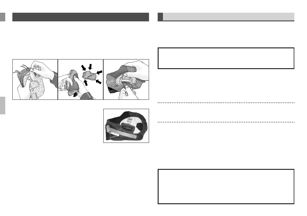naar buiten ligt, trek de stof over het wangstuk en maak het glad. Trek