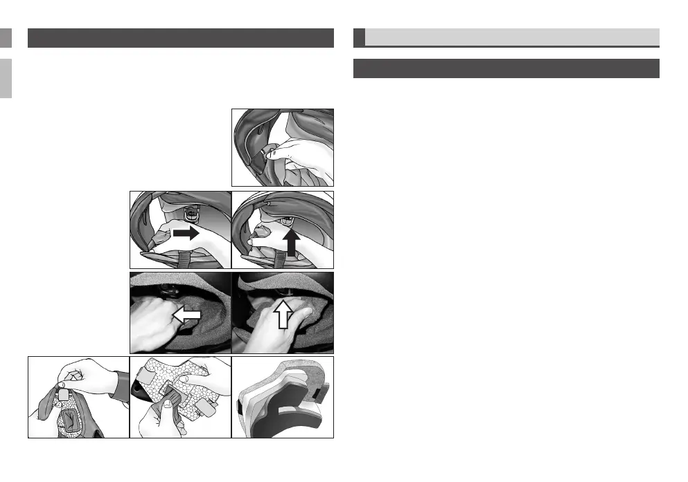 To remove the cheekpads, first undo chinstrap. Lift up the neckroll tab,