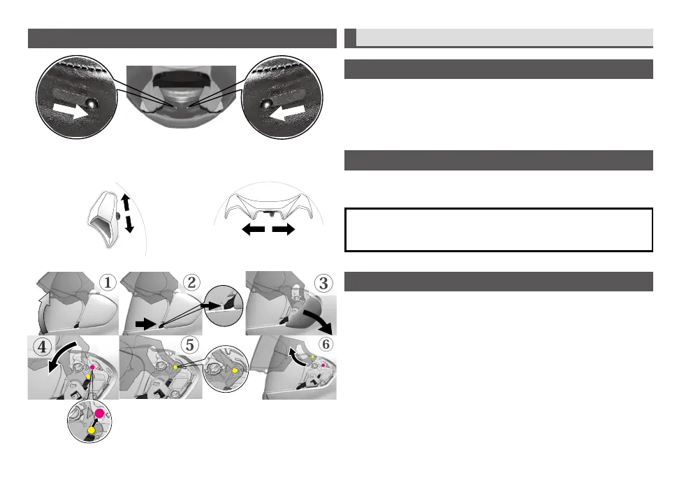 To remove, place shield in the fully open position ①. Push the side pod