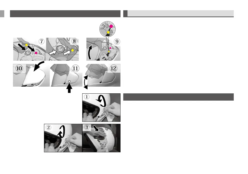 with a flat blade screwdriver or a coin ①. Remove plates from helmet shell.