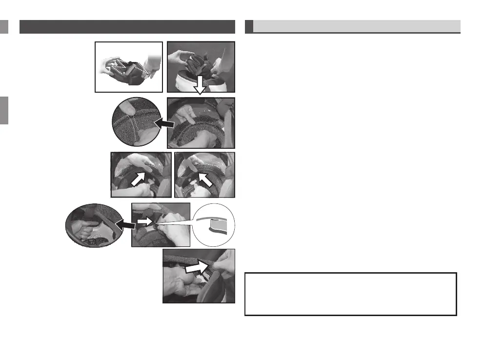 Inserire le due linguette laterali dell’imbottitura interna tra la calotta esterna e