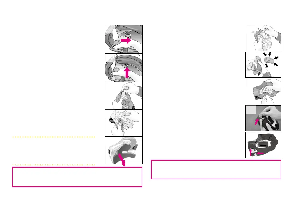 Pull the pad toward the rear of the helmet ②.