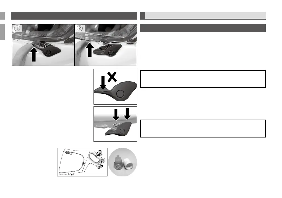 WARNING : Be sure to latch the shield properly before riding. If not latched