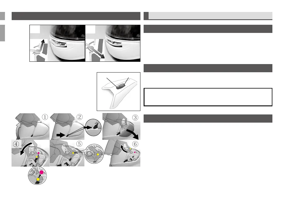 To remove, place shield in the fully open position ①. Push the side pod
