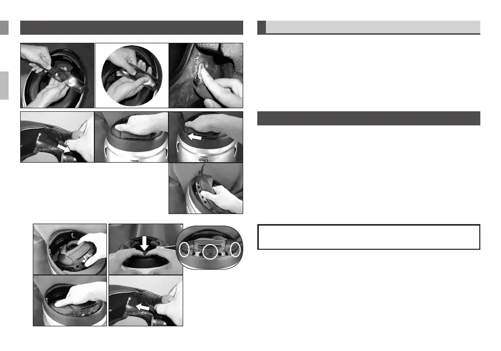 Zum Einsetzen der rechten Kinnriemenabdeckung (lange Seite)