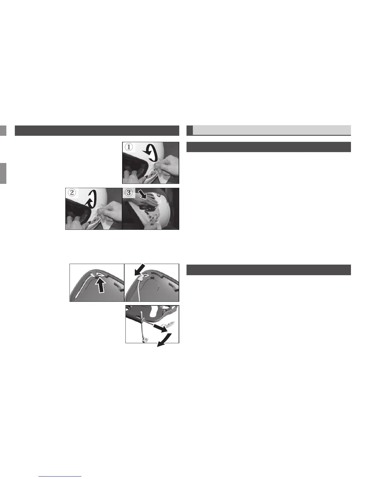 casco. Tirare il laccio fino al suo arresto, quindi piegarlo verso il retro del