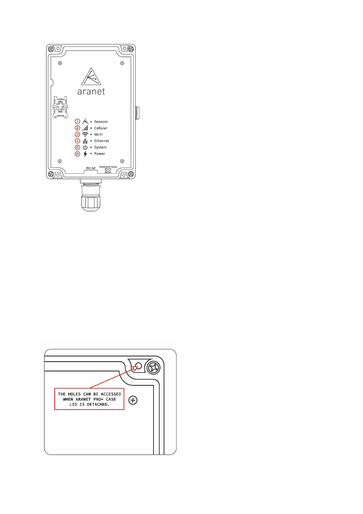 (4) Ethernet connection indicator LED – yellow light when Aranet PRO+ is connected to LAN using