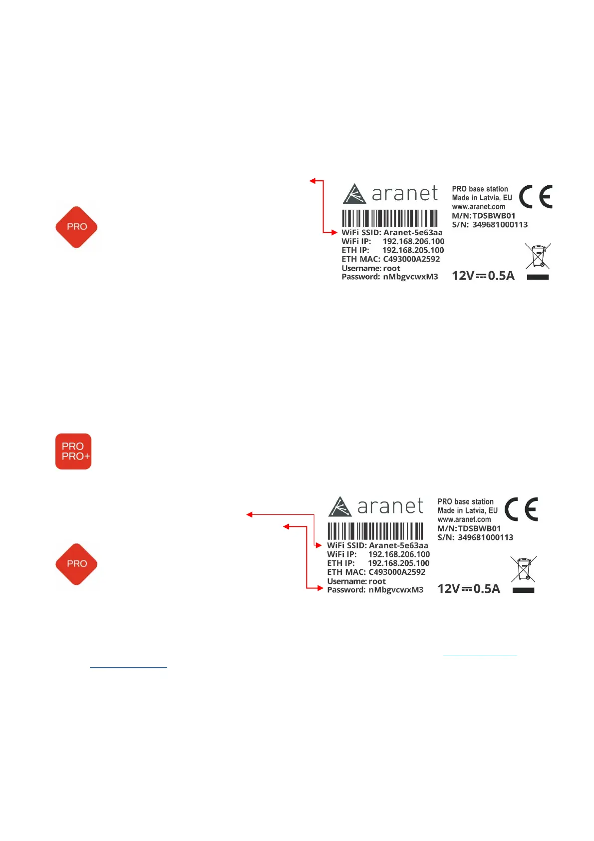 Aranet PRO/Aranet PRO+ base station Network factory settings are: