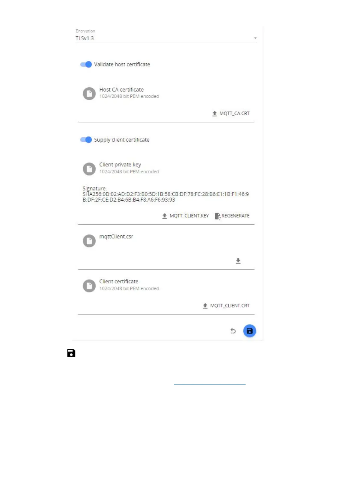 10) When all necessary configuration parameters are entered, they should be saved by pressing the blue