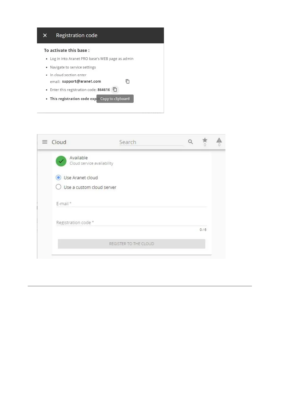 green*, and type in or paste from clipboard e-mail address you are registered with in aranet.cloud, and